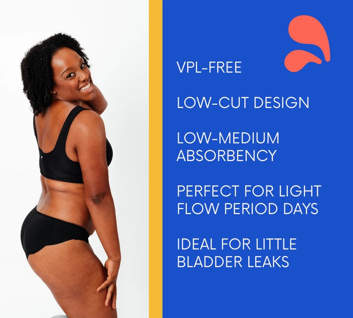 It has 4 layers of subtle gusset for extra security against bladder licking, periods and sweat.
