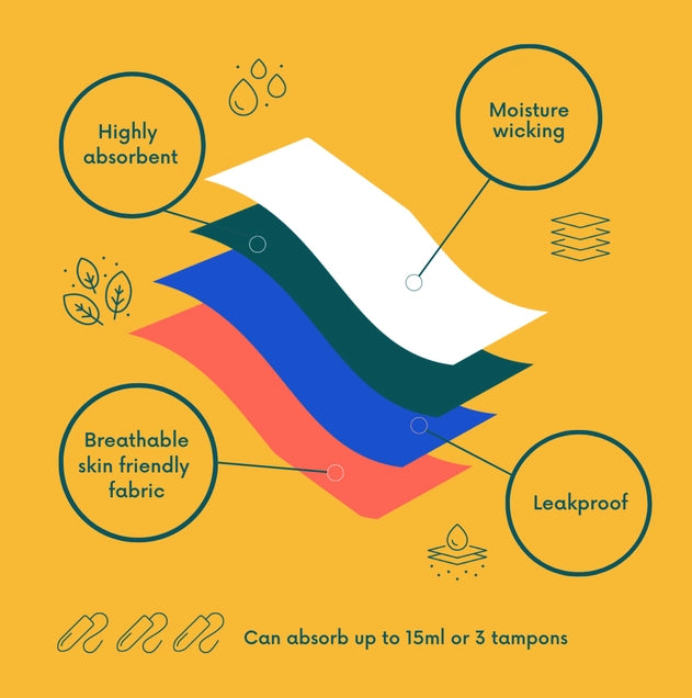 Holds up to 10ml - 2 tampons Body: 75% nylon, 25% elastane Lining: 95% cotton, 5% elastane Middle: 95% cotton, 5% elastane Waterproof TPU